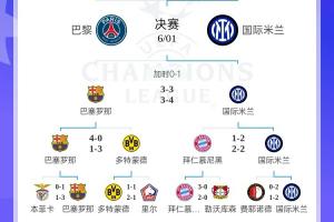 本赛季欧冠淘汰赛,国米先后淘汰德甲第一拜仁、西甲第一巴萨,决赛将战法甲第一巴黎。